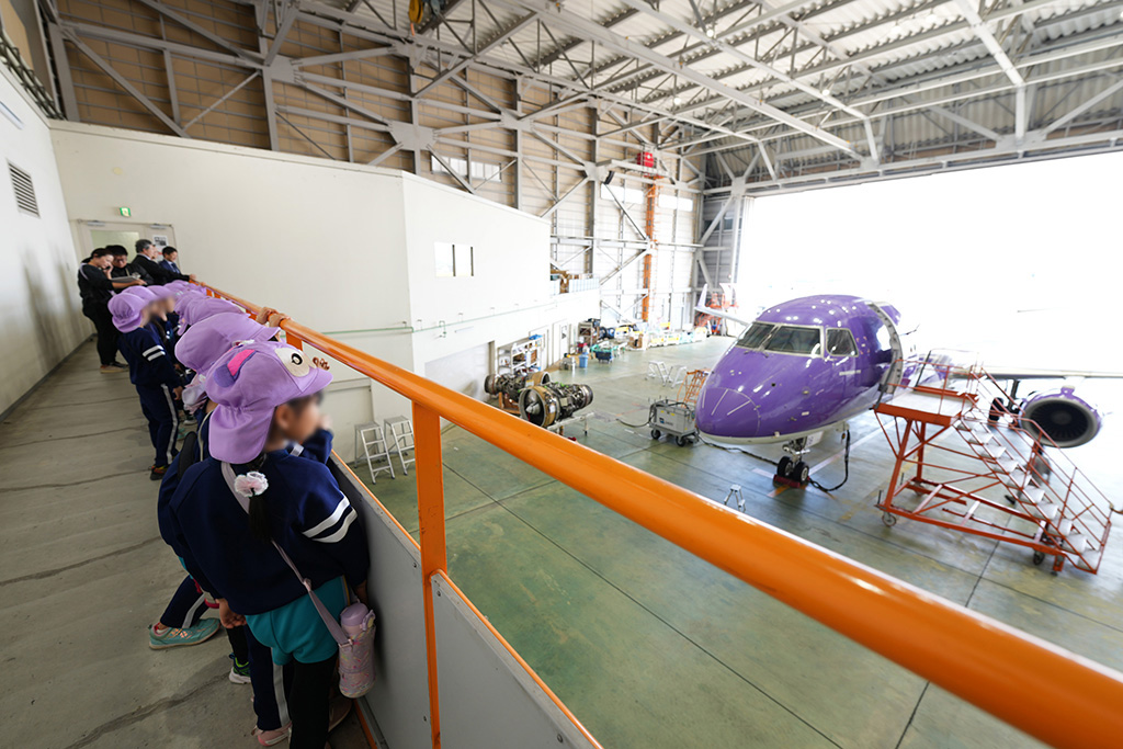名古屋自由学院 滝子幼稚園の園児たちが、2025年10月27日(月)に県営名古屋空港内のFDA(フジドリームエアラインズ)格納庫を見学しました。