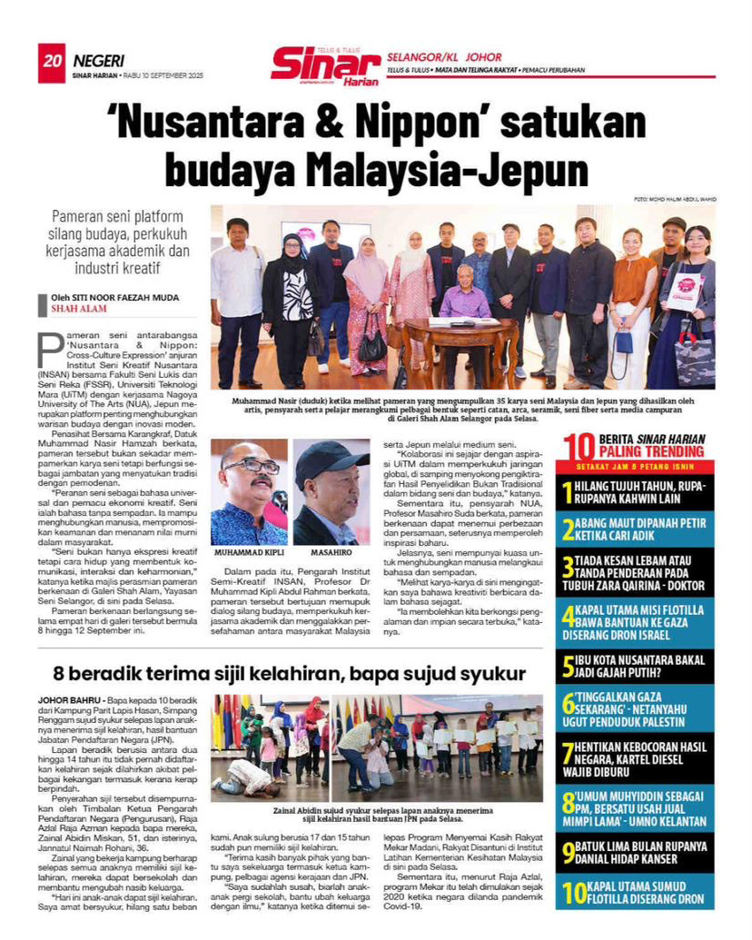 マラ工科大学との研究発表会及び交流展覧会を9⽉8⽇から14⽇にGaleri Shah Alamで開催。CDRM6メンバー須⽥真弘と本学⾮常勤講師である飯⽥美穂、三⽊瑠都、植村宏⽊の4名が参加した。
